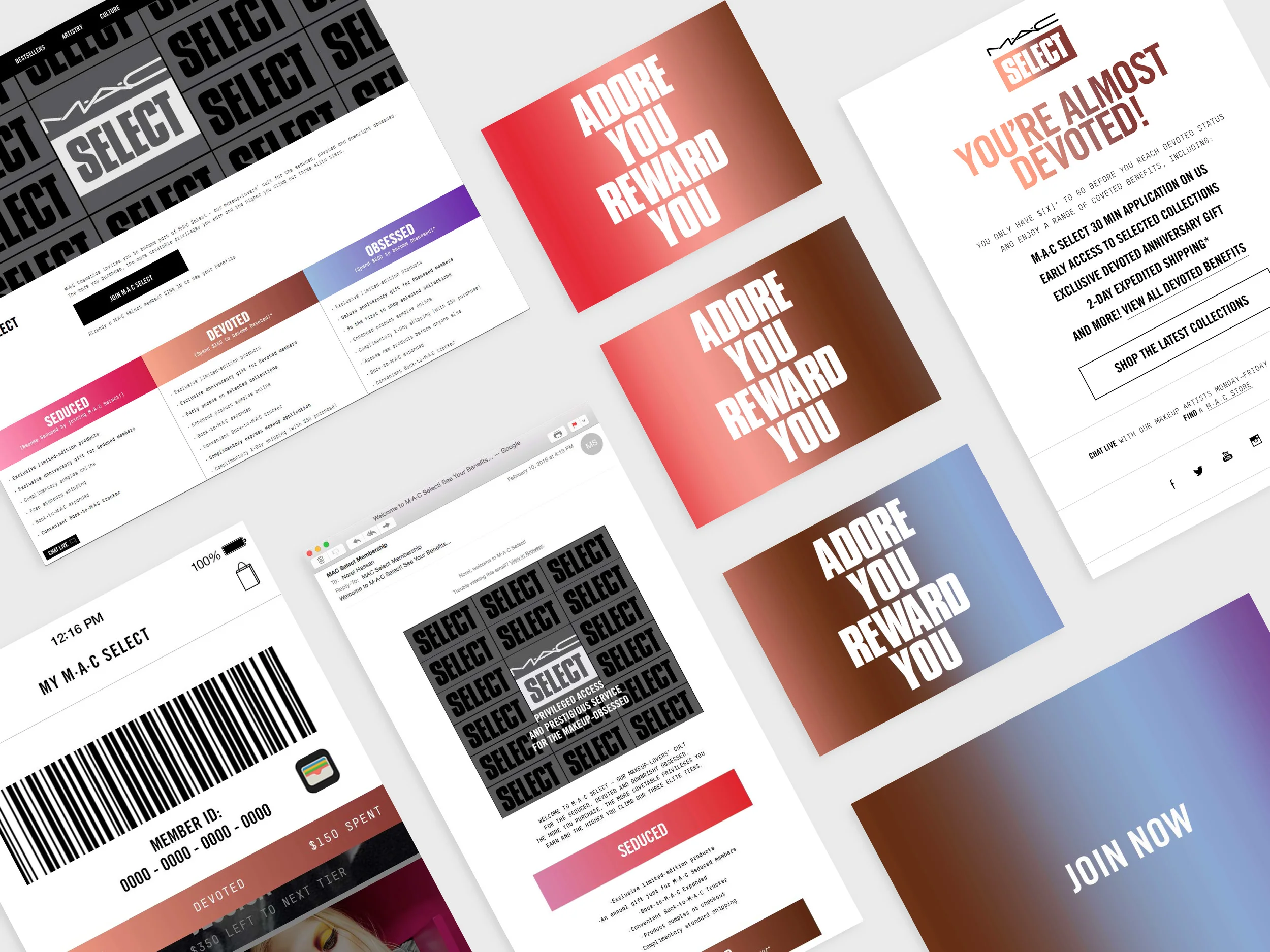 With the launch of a new rewards program, I led the digital design team to create an iOS app to better help customers track their progress through M·A·C Select’s three loyalty tiers.